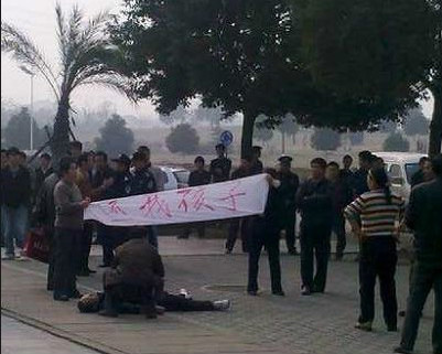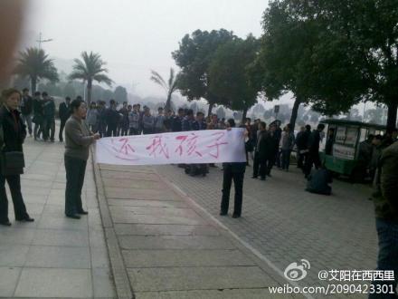 2011-11-28中午死者父母来到武汉纺织大学阳光校区讨个说法却被保安打了。