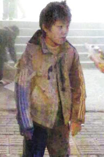 死里逃生的小童一脸惶恐,满身尘土。互联网