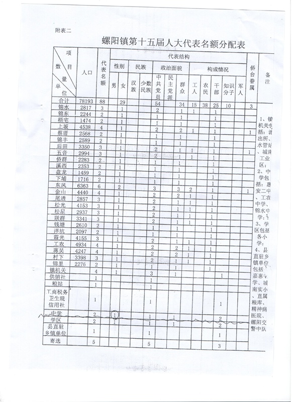 可是,惠安县人大常委会“依法确定”的、报泉州市人大常委会“备案”的螺阳镇机关选区分配了四位应选名额!(见附件1)