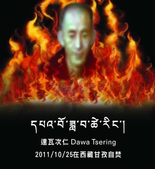 11、达瓦次仁:康区(今四川省甘孜藏族自治州)甘孜县甘孜寺僧人,38岁。于2011年10月25日在甘孜寺举办“羌姆”法会时点火自焚,并高呼“让达赖喇嘛返回西藏”、”西藏没有人权”等口号。他被藏人僧俗扑灭火焰并送医院抢救,后又送回寺院,伤势严重。