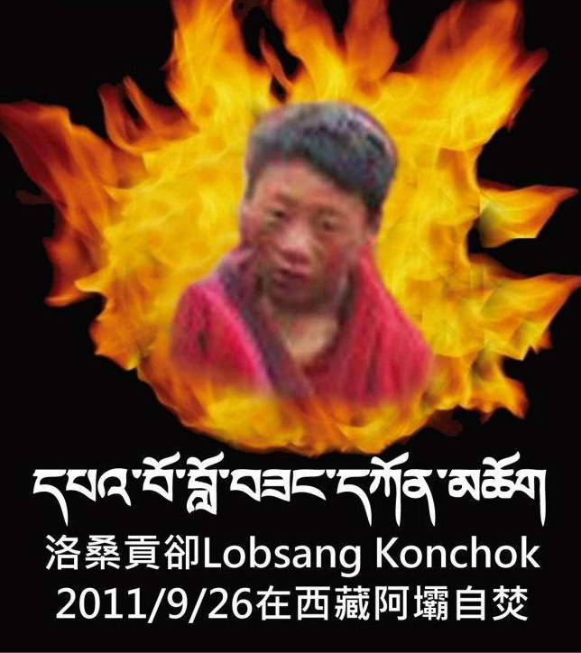 5、洛桑贡确:安多(今四川省阿坝藏族羌族自治州)阿坝县格尔登寺僧人,18岁。于2011年9月26日在阿坝县城点火自焚,呼喊“祈愿达赖喇嘛长久住世”、”我们要宗教信仰自由“等口号,烧成重伤并被中共军警抓捕,目前不知下落,生死不明。