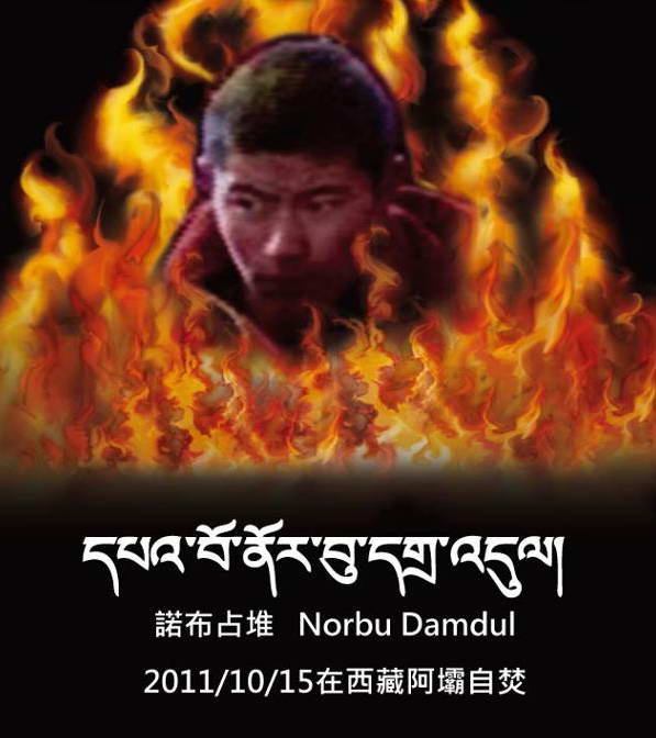 9、诺布占堆:安多(今四川省阿坝藏族羌族自治州)阿坝县索尼(音译)村人,19岁。于2011年10月15日在阿坝县城点火自焚,并呼喊“西藏要自由”、“西藏独立”、“让达赖喇嘛返回西藏”等口号。烧成重伤并被中共军警带走。于2012年1月5日在马尔康县医院去世。他本是格尔登寺僧人,2010年被工作组驱逐出寺。