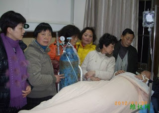 120救护车将王扣玛送往上海市黄浦区中心医院抢救室进行紧急抢救。上海访民毛恒凤、童国菁、沈佩兰、石萍、詹荣妹、项文寅等数十访民也随同去医院守护王扣玛。