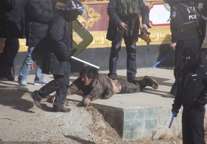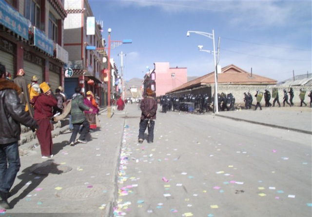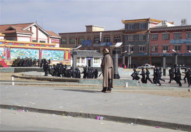 1月24日,在藏东康地色达(今四川省甘孜藏族自治州色达县),藏人抗议被众多持有武器的军警镇压。一些现场照片已传出,见西藏时报。