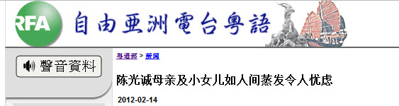 被软禁接近年半的山东失明维权人士陈光诚,他母亲及小女儿的情况近日引人忧虑。母亲自春节起无接触过任何人,小女儿于春节后亦没有上学。有关注的网友计划前往山东了解,但遭当局监控无法成行。(姬励思报道)