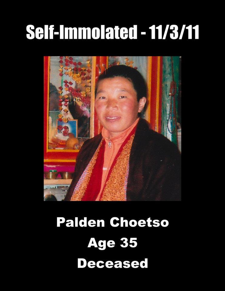 25、仁钦:安多阿坝(今四川省阿坝藏族羌族自治州阿坝县)牧民,女,32岁。于2012年3月4日早上,在格尔登寺外的派出所前点火自焚,牺牲前在火中呼喊 要求西藏自由和让达赖喇嘛回到西藏的口号。 仁钦是三个(又有说四个)孩子的母亲,最大的13岁,最小的才几个月大。而仁钦的丈夫布达于去年去世。目前暂无她的照片。