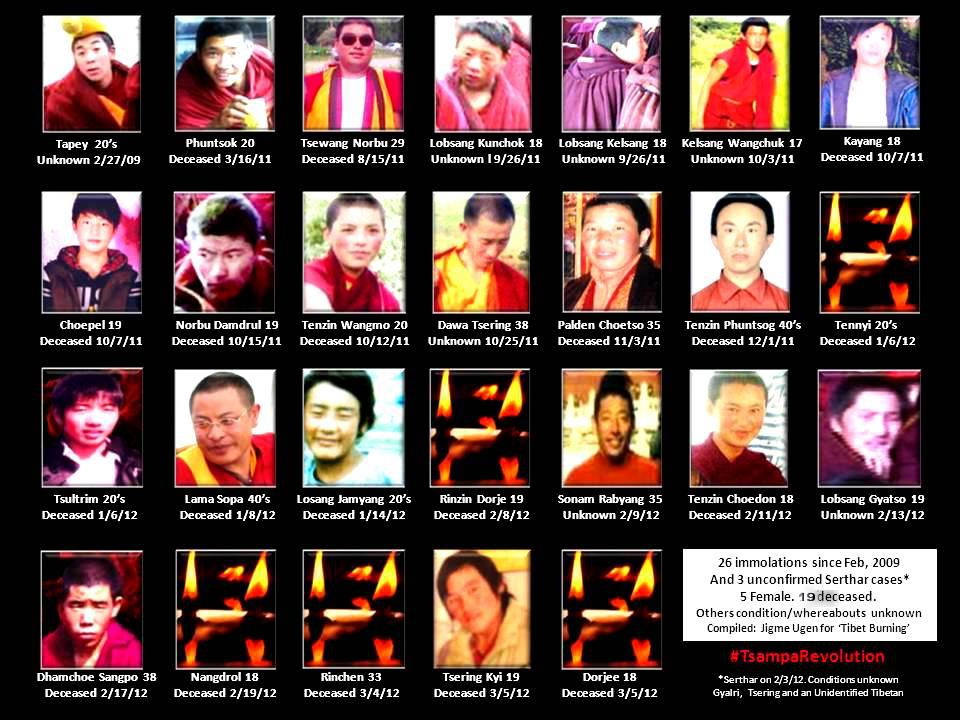 而从2009年2月27日至2012年3月5日,在境内藏地竟有26位藏人自焚,已知其中19人牺牲。简述这一严峻事况如下: