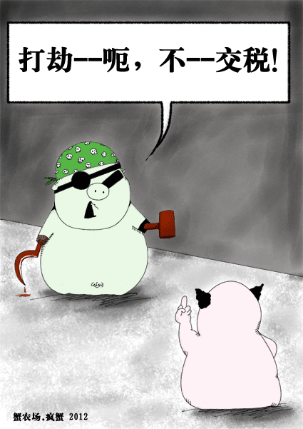 蟹农场漫画:打劫缴税 2012年3月29日 原文 本文由自动聚合程序取自网络,内容和观点不代表数字时代立场 Loading… 定期获得翻墙信息?请电邮订阅数字时代 所在分类:网事纷呈标签:漫画 相关文章 【重温】Oozgur|新疆漫画:被封禁的绿洲 【CDT连载】Oozgur|新疆漫画:被封禁的绿洲 【漫画展室】撸一串儿:玩火者 【漫画展室】“新清明上河图”与“别造谣” 【漫画展室】你连自己的都欺骗呀