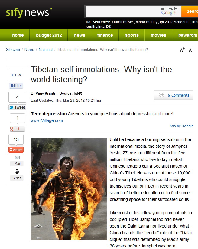 One burning and dying immolator after another shouting for “rangzen” (Tibetan freedom) and return of Dalai Lama to Tibet has exposed another face of Tibetan reality to the millions of YouTube watchers across the world as opposed to what Chinese government claims.