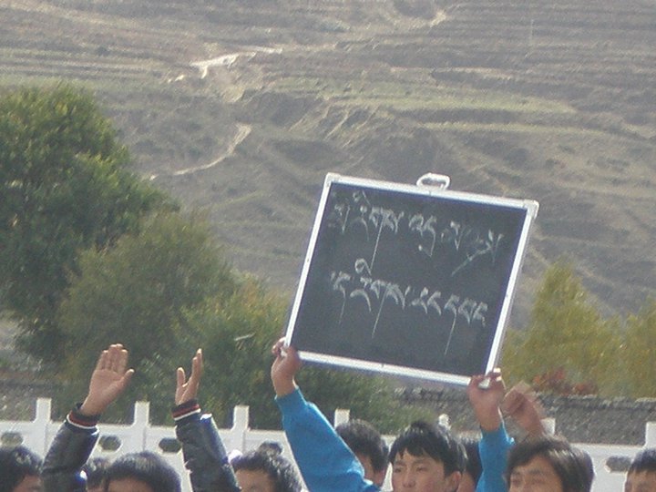 犹记得前年10月19日,在安多热贡,数千名中学生和小学生走出校园,高高举起的小黑板上用藏文写着“我们需要藏语课”。随后在安多许多地方,从青海藏区到甘肃藏区,不计其数的孩子们发起了捍卫母语的行动。甚至在北京的中央民族大学也有许多藏人学生为之呼吁。
