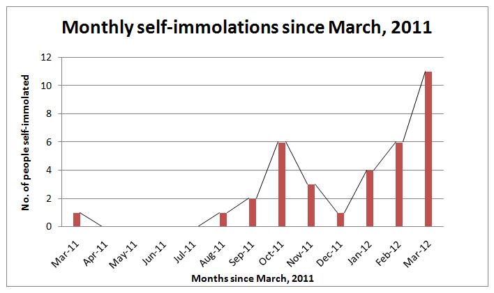 图3、为2011年3月以来境内外藏人自焚事件之图示。