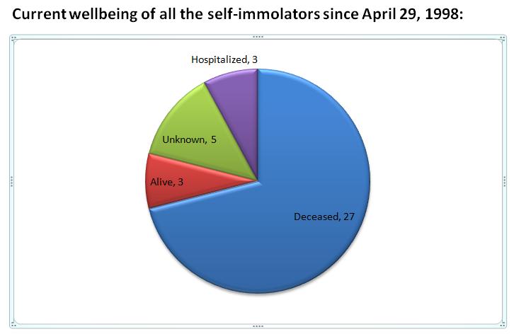 图2、为1998年4月29日图登欧珠自焚之后,38位自焚藏人的生死状况之图示。其中有27人牺牲。