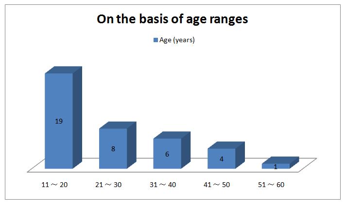图4、为38位自焚藏人分布地区及性别之图示,在“流亡”中包括1998年自焚牺牲的流亡藏人Thupten Ngodup(图登欧珠)、2006年自焚受伤的流亡藏人Lhakpa Tsering(拉巴茨仁)、2011年11月4日自焚受伤的流亡藏人Sherab Tsedor(西绕次多)、2011年11月10日自焚受伤的流亡藏人Bhutuk(博楚)、2012年3月26日自焚牺牲的流亡藏人Jampa Yeshi(江白益西)。图5、为38位自焚藏人的年龄阶段之图示。