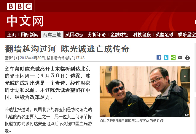 驾车帮助陈光诚离开山东临沂到达北京的郭玉闪周一(4月30日)透露,陈光诚的成功出逃是一个奇迹,经过周密的计划和忍耐,不过陈光诚希望留在中国,继续为改革尽力。