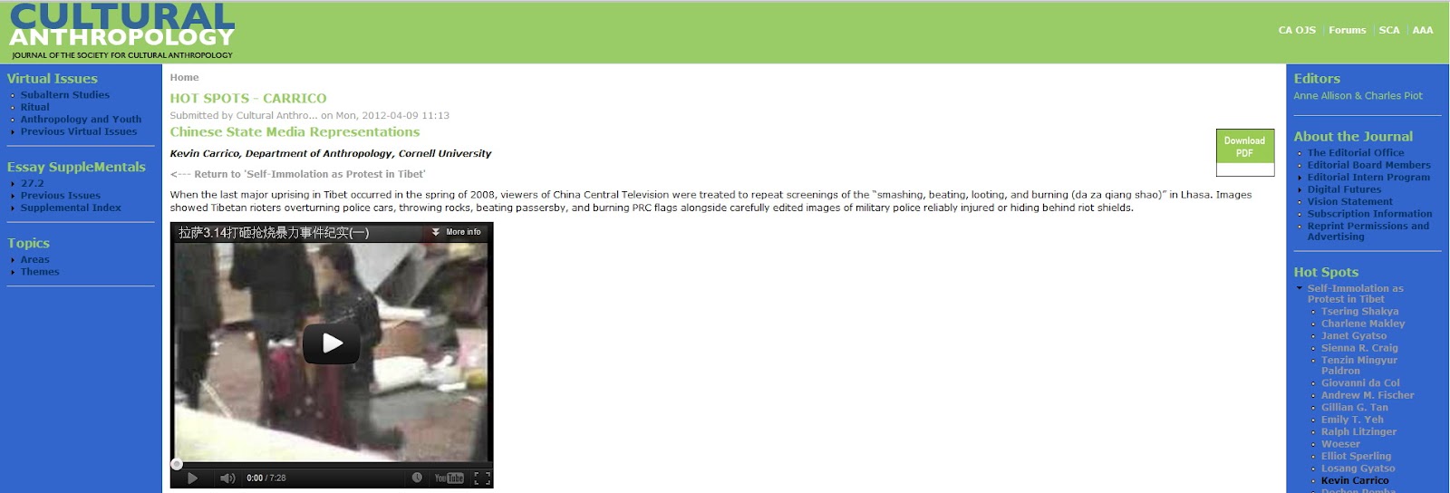 In contrast to this frenzied broadcast of images, the most striking characteristic of the state media response to the recent series of self-immolations in Tibetan regions has been its relative silence. Despite the length of these protests and the gravity of the events at hand, reports have been rare, and when they have appeared, they have generally been quite clumsy. Even the Global Times (Huanqiu shibao), known for its characteristically outspoken state-nationalist viewpoint, seems to have stumbled in search of words to characterize recent events, claiming in an odd editorial that there is “no need to sweat over minor unrest.” The state media, increasingly adept at incorporating all types of events into official discourses, appears to be at a sudden loss for words.