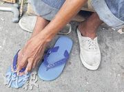 | 財叔有新拖鞋著,終於不用焗腳。(李澤彤攝) |