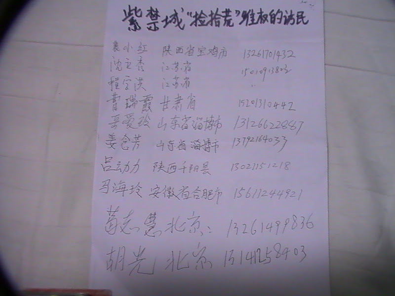 参于此次活动的访民告诉本网信息员,他们本来准备了一些纪念“六四”23周年和呼吁平反“六四”的标语,但因为消息泄露,几天前北京的葛志慧和胡光家就被“站岗了”,他们还遭到当地警方的威胁和警告不许组织参与纪念“六四”活动。