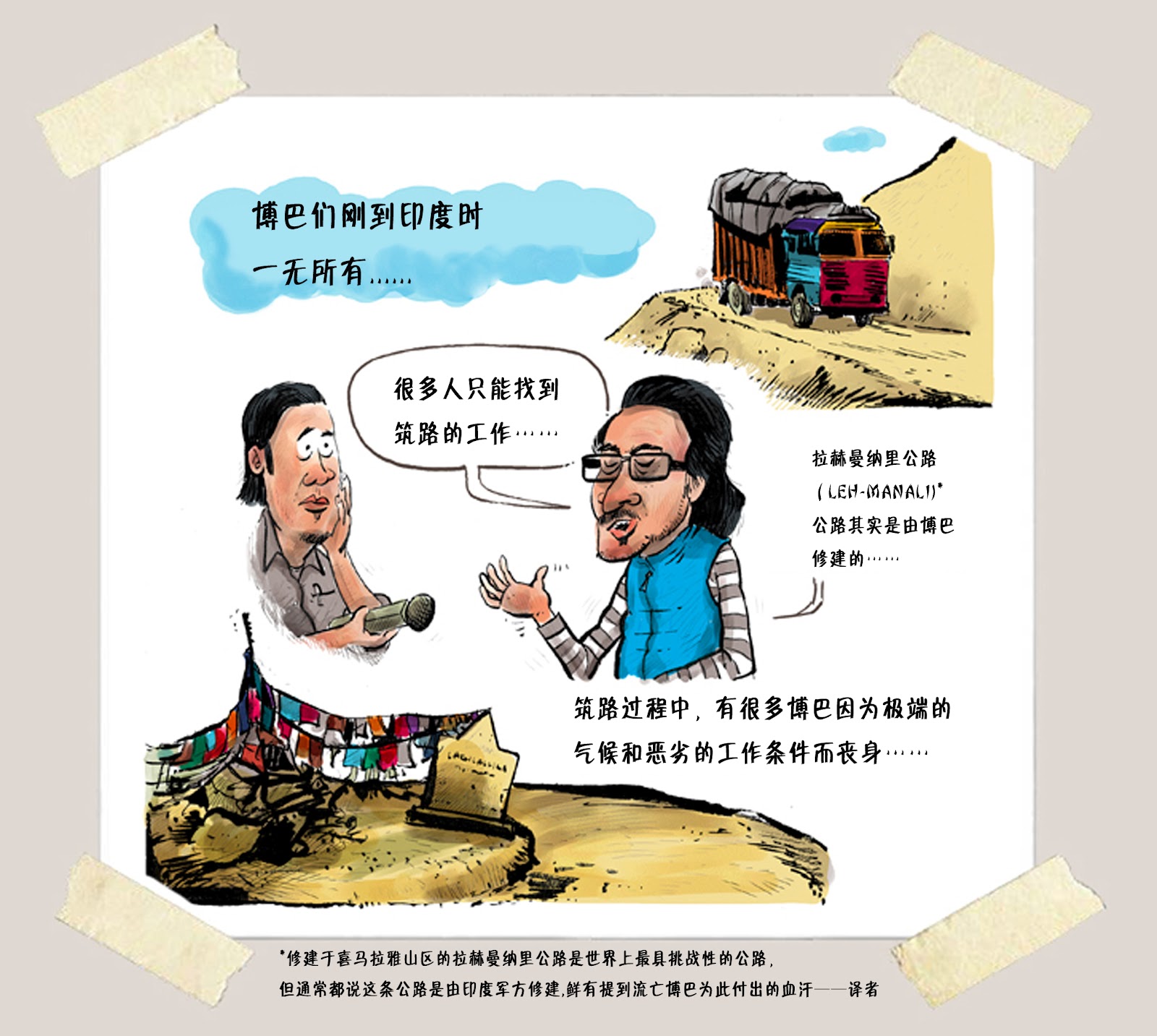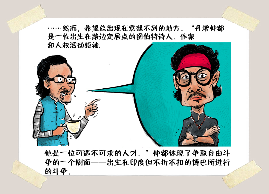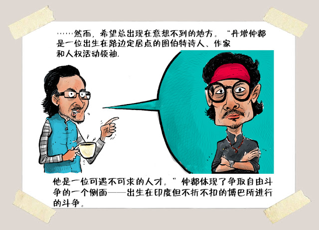 5月23日,Cartoon Movement(漫画运动)网站,发表了多媒体漫画 Tibet’s Sacrifice: Exiled Lives(图伯特的牺牲:流亡生活)包括视频,作者是 Dan Carino(丹·卡里诺)。连环漫画中的图说已译为中文,经由译者同意,在此首发,点击显示大图。