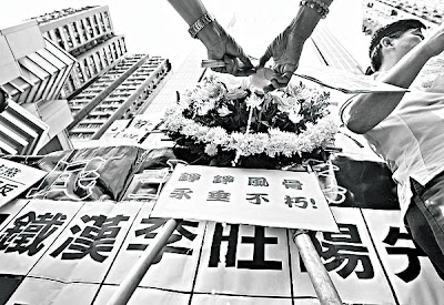 目前香港和澳門成為能夠公開討論這宗命案的特區,李旺陽的靈位不在家鄉湖南,卻在境外兩個小小特區,實在令人不勝唏噓。值得一提的是,李旺陽死後,本港三份左報首兩天均隻字不提,直到上周六(本月9日),《文匯報》終於有一百八十二字的短文,標題是〈李旺陽湖南病房自縊亡〉,內容撮要為:「……死者李旺陽,男,62歲……2012年6月6日6時許,同室病友李某發現李旺陽上吊在病房西側窗護欄上……初步確認李旺陽係自殺身亡,有關情況正在進一步調查中。」