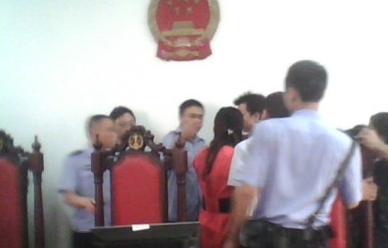 在法庭辩论到上午11:30分左右,这位被告席上的少妇的手机突然响起,她拿起手机就接听电话,当时在场的旁听和当事人强烈抗议此等藐视法庭的行为,她听到这种对她抗议的语言,接完电话就大发雷霆,拍桌子,骂街,“你们算什么东西”当事人史雪娥很气愤,就回了她一句,她就从被告席下来要打人,法庭审判长宣布休庭。