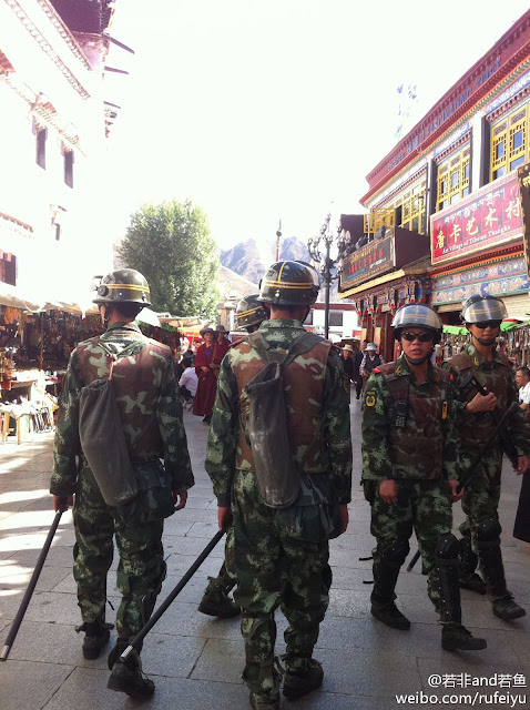 若非and若鱼:街头随处可见的武警和军人。据出租车司机说,拉萨隔三差五的就被军人接管,警察负责站岗。(6月8日)