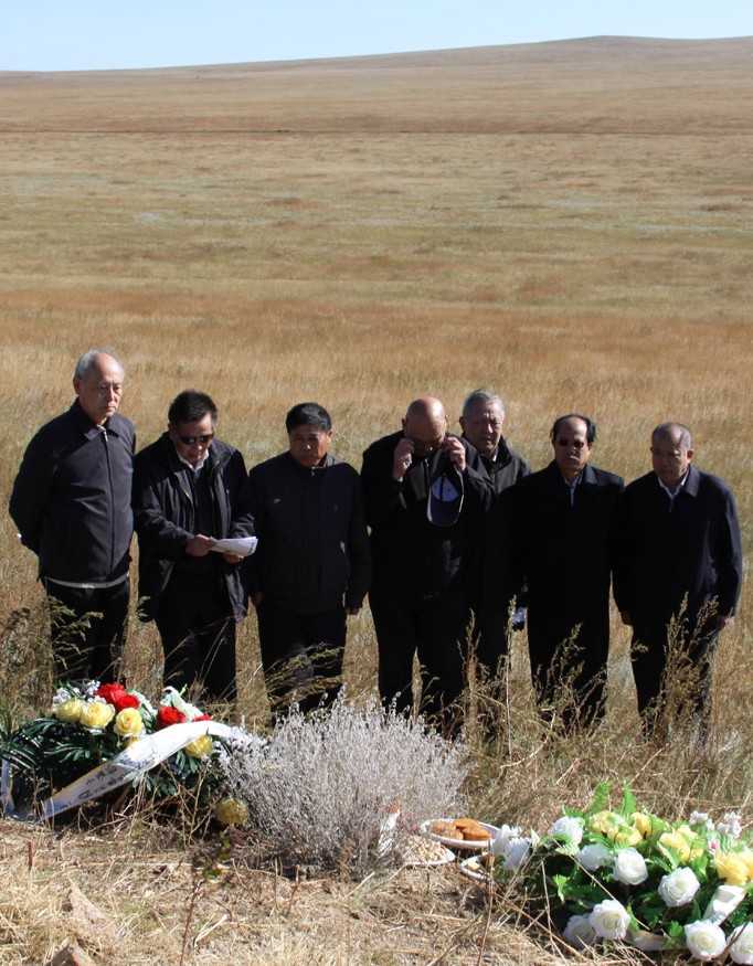 張清林一行來到墜機現場,在墳前安放了兩個花圈,一個是林豆豆和張清林獻的,一個是黃吳李邱後代獻的。按中國風俗,擺了四個果品祭盤,並打開一瓶茅臺酒,洒在墓前