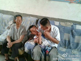 图(来源赵未微博)赵未和陈光诚的妈妈以及陈可贵的儿子在陈光诚大哥陈光福家