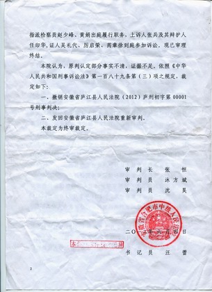 | 合肥中院发回重审裁定书 |