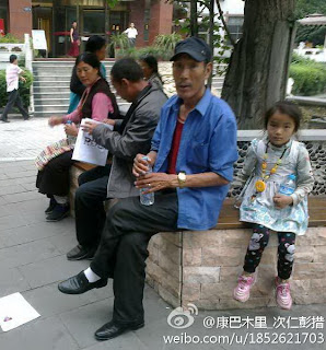 他还发了这些老乡坐在成都街头的照片(见上图),看上去是边远之地的质朴藏人。他们是专程去拉萨朝佛,辛辛苦苦地积蓄,准备了很长时间。年轻藏人在微博上说:“……能在成都遇到这些自己家乡的同胞,尽自己最大的努力为他们的西藏朝圣之行提供一些力所能及的帮助,也算是做了件好事。他们一生中最难忘而神圣的时刻就从今天开始了,希望他们十个人今天到拉萨后一切都顺利!”