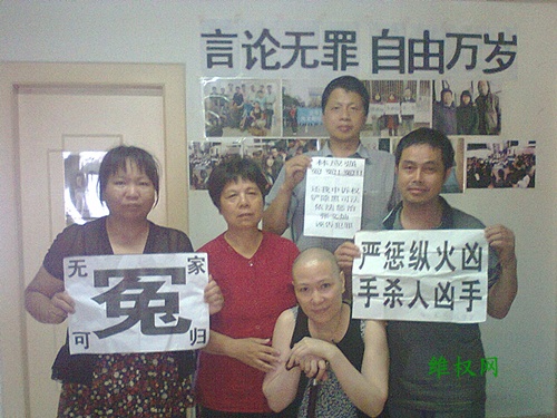 (维权网信息员任强明报道)6月28日中午,福州仓山区冤民林兰英、林祥官、刘玉钗、林应强等人到福建南平探望并慰问了被软禁在家中福建三网友之一的范燕琼女士。