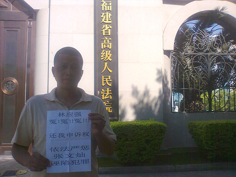冤民林应强深受福州黒司法之害,惨遭福州腐败村长张文灿凭空捏造事实构陷降罪而被坐牢4年,但福建省高院却故意包庇犯罪,非法剥夺林应强的申诉权,至今仍压案(申诉复核)不办。