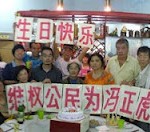 (维权网信息员方芳、关小令报道)7月1日,是上海著名的维权人士冯正虎先生59岁生日,上海62位正在北京上访的访民因来不及赶回上海,只好在北京为冯正虎先生举办了一场别开生面的生日Happy。