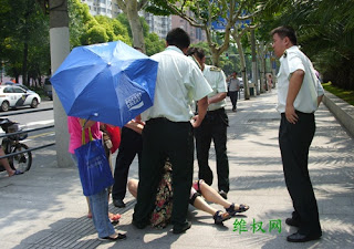 (维权网信息员晨晓报道)7月4日下午2点左右,上海访民维权者访民孙洪琴、魏勤等人到上海高院门前抗议司法腐败,要求立案,还我诉权。高院警察和保安不准孙洪琴等人抗议,并将孙洪琴拖离大门殴打,致孙洪琴身上多处受伤。孙洪琴当即报警,警察(警号023169和023276两人)说派出所不受理,称你们去分局报案。不给填写110接处警(案事件接报)登记表,不开验伤单便开着警车扬长而去。