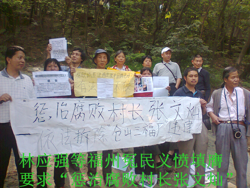 冤民林应强被坐牢4年一案的真正起因是始于2004年12月21日发生在福州市仓山区委书记办公室外的暴力围殴上访人事件。当天时任仓山区盖山镇党委副书记兼纪委书记洪德潮(现任仓山区安监局局长)以原区委书记张森兴“约谈”名义通知林应强等十几个屿宅村失地农民代表到区委机关上访,令人难以置信的是所谓“约谈”变成暴力围殴镇压上访人的圈套。当时就是腐败村长张文灿的儿子张春强(现是屿宅村村支书)带领几十个歹徒在洪德潮现场指挥下,下令用暴力镇压应约正在区委机关上访维权的林应强等失地农民代表。