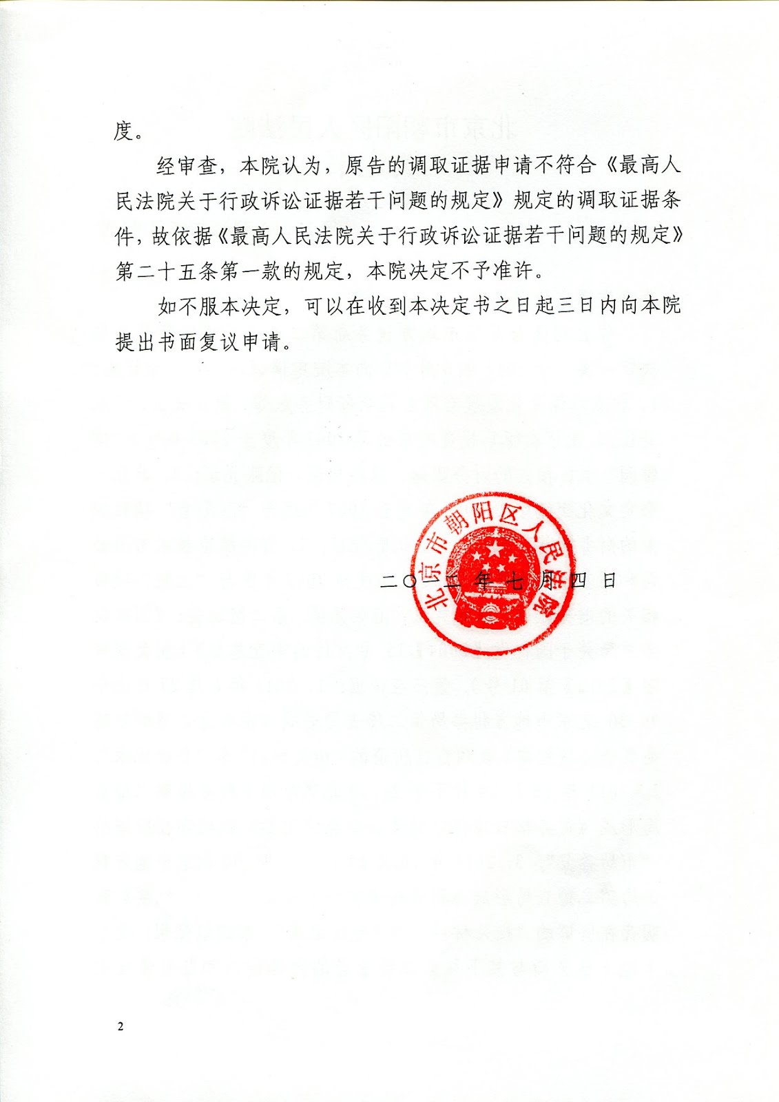 发课律师点评:开庭半个月后,朝阳法院不准调查证据的决定书姗姗而来,表明朝阳法院陷入程序错误难以自拔,无法自圆其说。