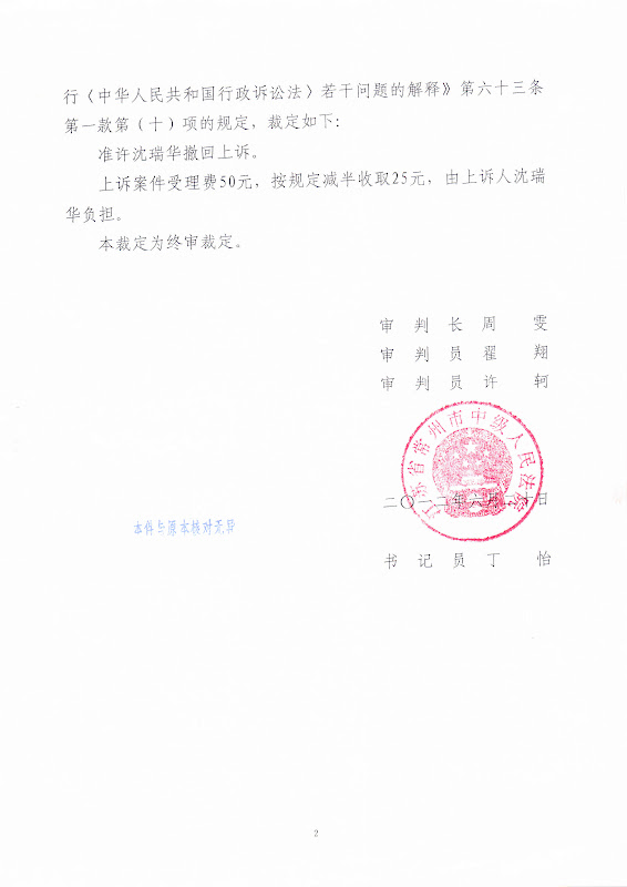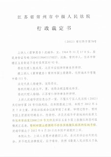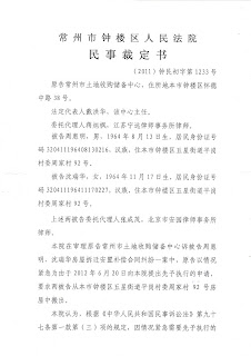 可到了下午,钟楼区法院突然将上午的表态改变,在明知道土地收购储备中心在房屋拆迁合同纠纷一案的民事诉讼中将百分之百败诉的情况下,给周惠明、沈瑞华夫妇送达了(2012)钟民初字第1233号民事裁定书,要求夫妻俩为没有了诉讼资格的常州市土地收购储备中心腾房。
