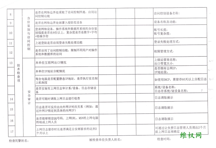 “安全摸排检查”的内容包括:是否由最高层领导主管信息安全工作;是否有专门的信息安全岗位负责具体开展信息安全相关工作;是否有专人负责对相关审计系统、日志设备的维护和操作;是否在网络边界处采取了访问控制措施,启动访问控制功能;限制不同用户对操作系统和数据库的访问……等等。该“写字楼网络安全摸排检查项目”涵盖了――岗位制度人员设立情况、系统运维安全、身份鉴别与访问控制、安全审计等几大类(详见附表)。并要求在写字楼办公的企事业单位购买和安装专门用于网络监控的软件。
