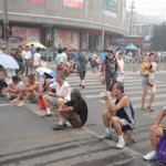 上午十点半,近50名被强拆民众来到西市场前的马路上把经一纬十一路堵了起来。堵路持续了三个多小时,下午二点多钟槐荫区一位副区长、区公安局的正副局长、区拆迁指挥部、拆迁办开始与群众对话。