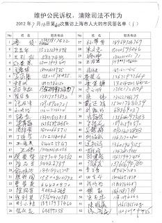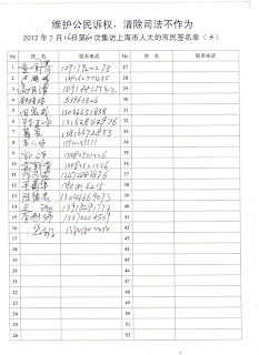 参与本次集体上访请愿行动的上海市民代表有 120位签名。希望人大领导高度重视.(附签名名单复印件)