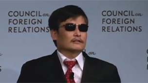 出獄後,他和家人一直被軟禁在臨沂東師古村的家中。直到今年4月,他逃離東師古村,進入北京的美國使館。經過中美政府交涉,陳光誠於5月19日抵達美國紐約,成為紐約大學的訪問學者。