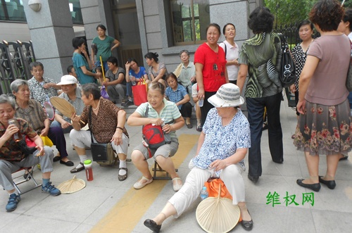 (维权网信息员郝驿道报道)7月20日上午9点,济南市中级人民法院南门出现了山东省征地受害人抗议法院立案的人群,计有80余人。请求撤销济南市政府征地决定的济南东部被征收人打着“强烈要求依法立案”的横幅,喊着“反对司法腐败”的口号,在法院门前抗议。还有来自单县张知楼的被征地人,因起诉山东省政府违法批地,未能立案,也打出横幅抗议。