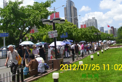 7月25日星期三上午,上海市1500余名维权者陆续前往人民大道200号的市政府信访办信访抗议,虽然有很多维权者被关进黑监狱,部分维权者前往北京上访,还有一些维权者前往北戴河,但前往市政府信访办抗议的维权者仍达1500余人。