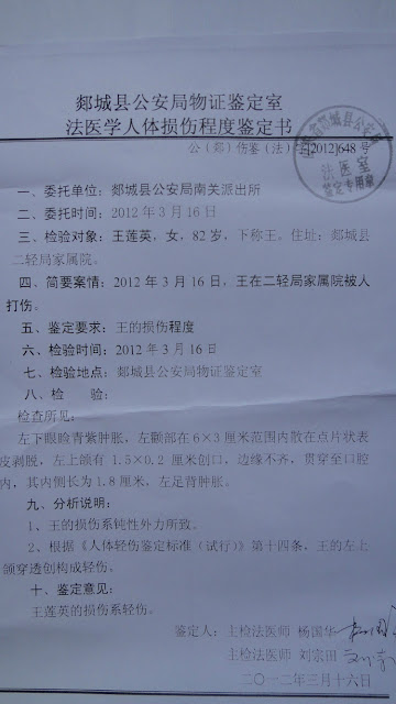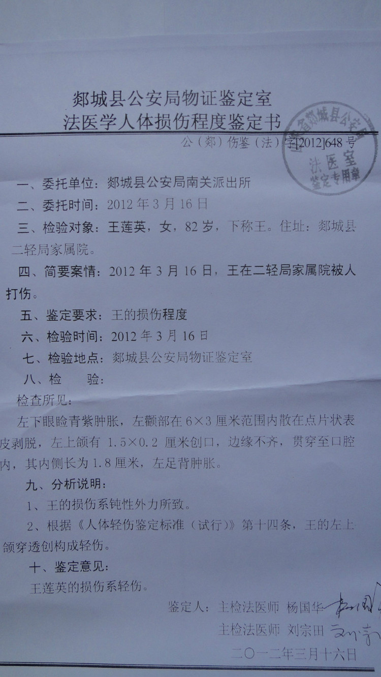 暴徒们一见他们母子三人冲出来,便将手里拿的砖头、石块、木棍、铁锤一起朝他们砸了过来,王莲英老人当场被砸昏倒地,头上鲜血直流,张兆友和二哥的头也被砸伤。
