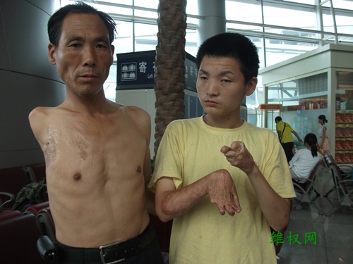目前,失去劳动能力,且生活不能自理的李治国、李晓龙父子仍乞讨北京,希望中央政府依法解决他的工伤赔偿案,使涉案的执法犯罪分子得到应有惩处,还他一个公道。