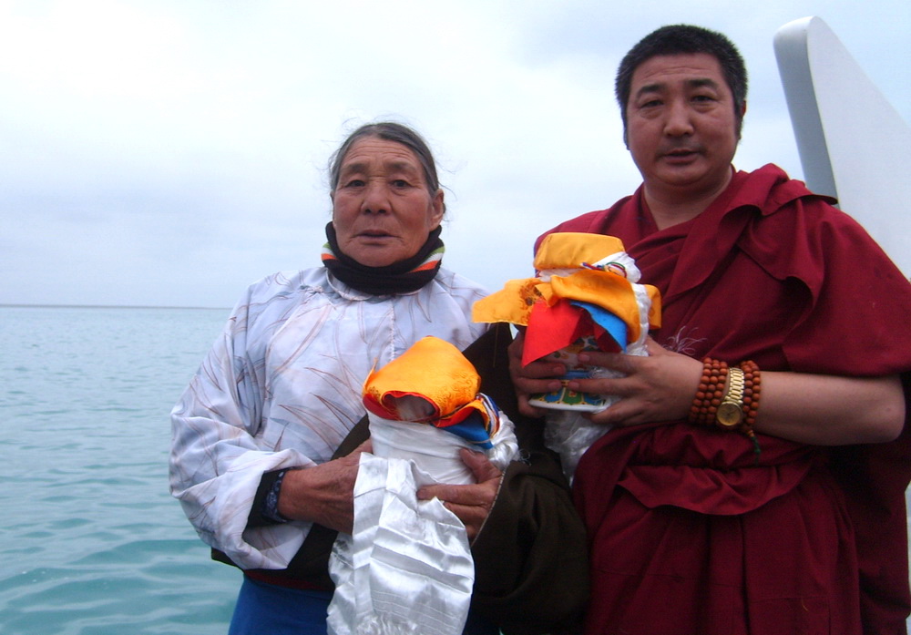| 图为喇嘛久美在2009年第三次蒙冤被捕获释后,与老母亲朝拜青海湖。(图片来源:喇嘛久美) |
