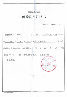 (维权网信息员张宁宁报道)南通拆迁维权人士周叶因揭发南通当局支持或者怂恿拆迁方逼迫拆迁户签订空白协议而受到南通当局的报复和陷害,将她关进黑监狱,又关进拘留所。但周叶勇敢地揭露南通拆迁空白协议和阴阳协议,却得到南通拆迁户的赞许,当周叶从拘留所释放时获得众多拆迁受害人的欢迎,竟震动了南通当局。当局派出大批警察将迎接周叶回家的维权人士一一拘押至下午5点后才释放。