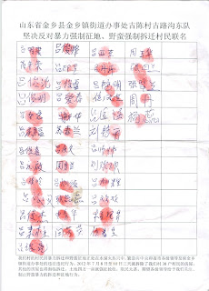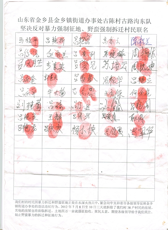 山东省金乡县金乡镇古陈村村民签名按手印: