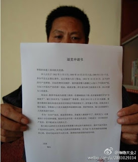 | 刘海军退党申请(网络图片) |