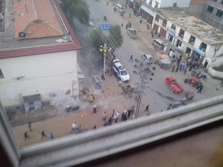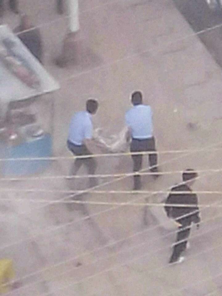 | 这两张图片转自西藏之声。记录的是8月13日两位藏人隆多、扎西在阿坝县城自焚并被军警带走的情景。 |