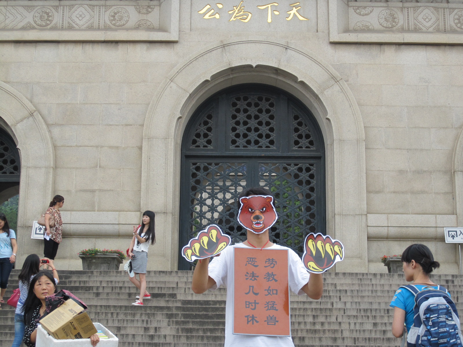 2012年8月25日在南京中山陵、9月1日在武昌首义广场均出现街头抗议劳教制度的行为艺术,参与者多是90后在校大学生。
